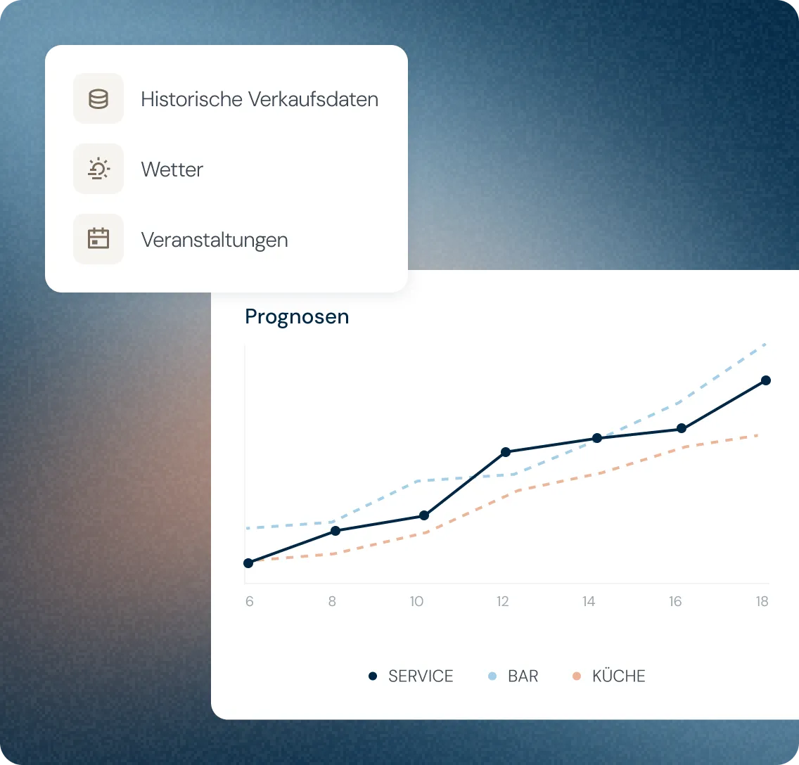 Präzise Prognosen für Umsatz und Gästeaufkommen basierend auf über 70 Datenpunkten. Von historischen Daten, Wetter, Events bis hin zu saisonalen Trends.