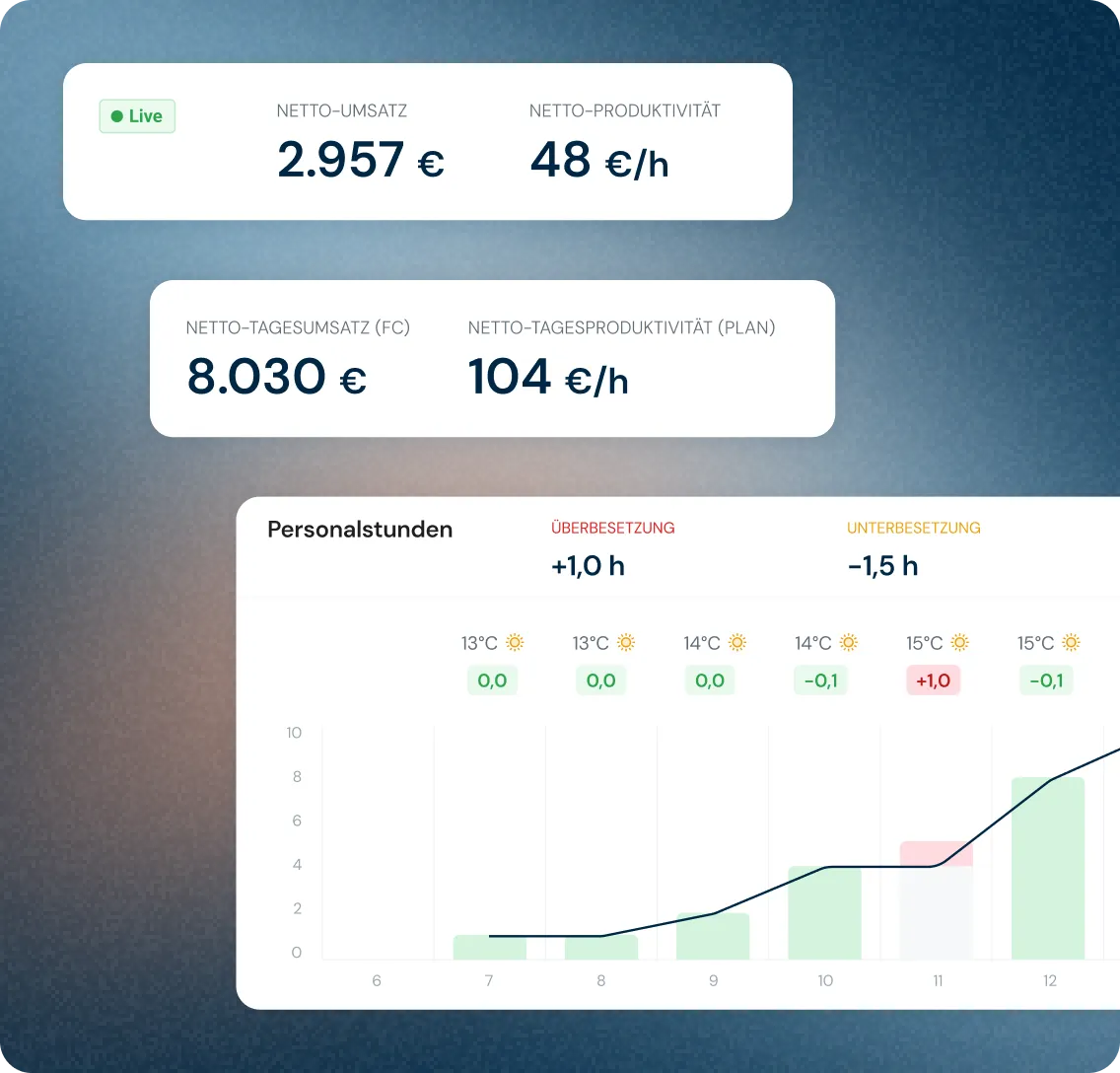 KPIs wie Servicezeiten, Umsatz und Personalkostenquote in Echtzeit
