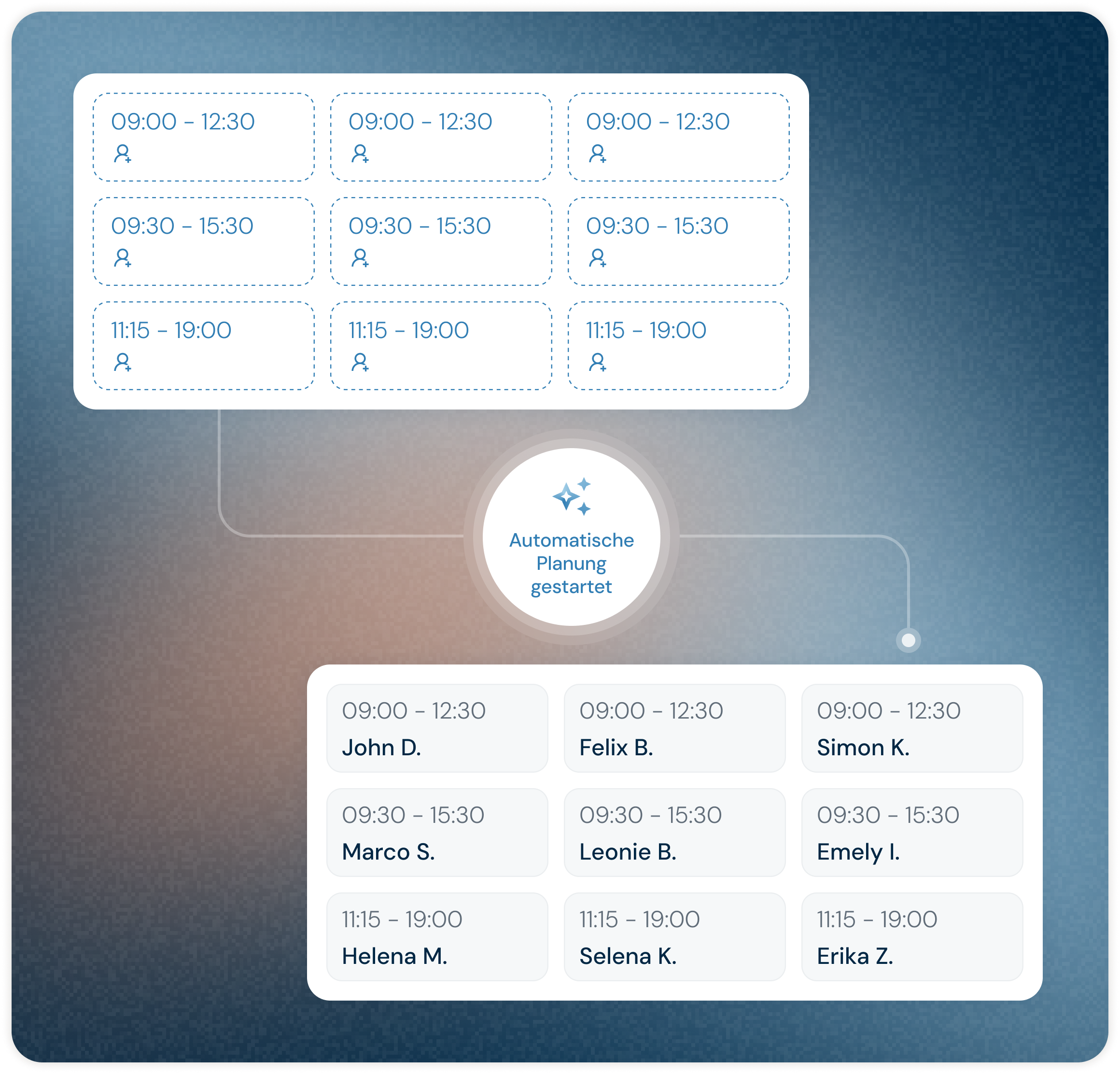 Employees store their preferred times directly in the app, and the AI automatically takes them into account when planning.